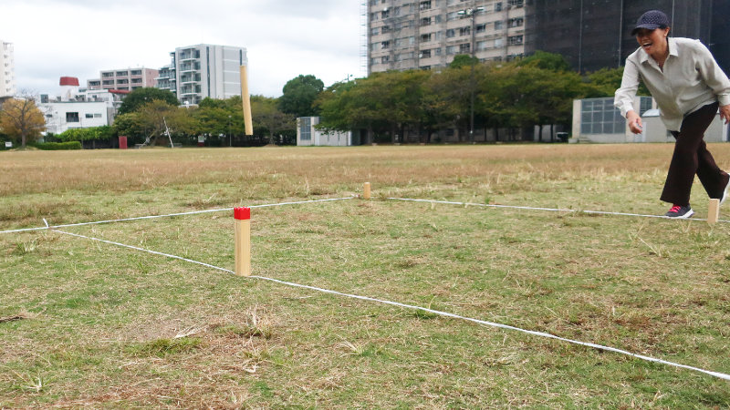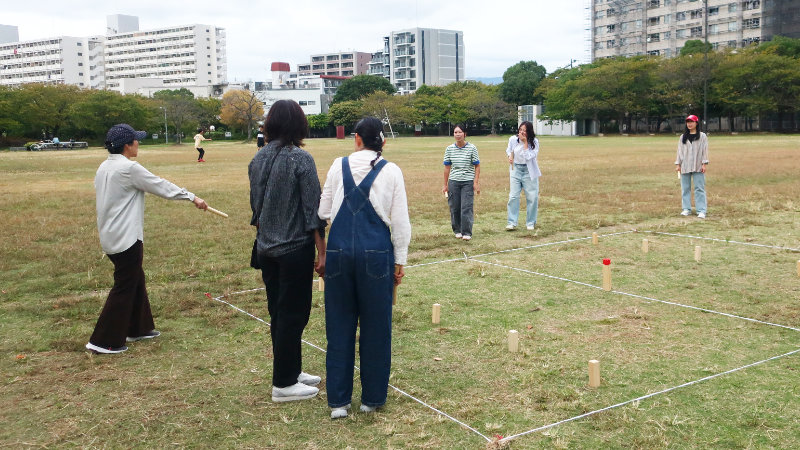 木の棒がクッブに当たらないときには「惜しい!」「頑張って!」と声が飛び、当たったときには敵味方関係なく大歓声。笑顔があふれる、のびのびとした楽しい時間になりました。