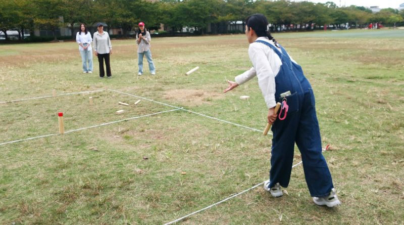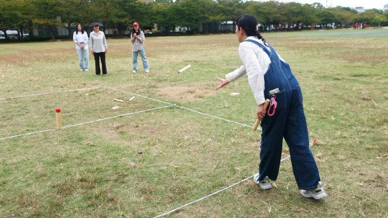木の棒がクッブに当たらないときには「惜しい!」「頑張って!」と声が飛び、当たったときには敵味方関係なく大歓声。笑顔があふれる、のびのびとした楽しい時間になりました。
