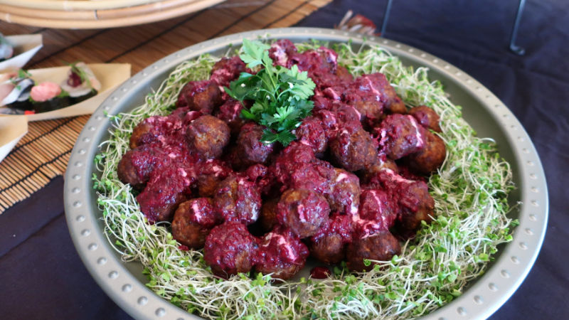和のメニューを得意とされている益やさんですが、今回は特別に、クリスマスハムやミートボール、ニシンのマリネをアレンジしたカナッペ寿司など、スウェーデン料理をベースに和の感性を掛け合わせた、この日だけの特別メニューをご用意くださいました。
