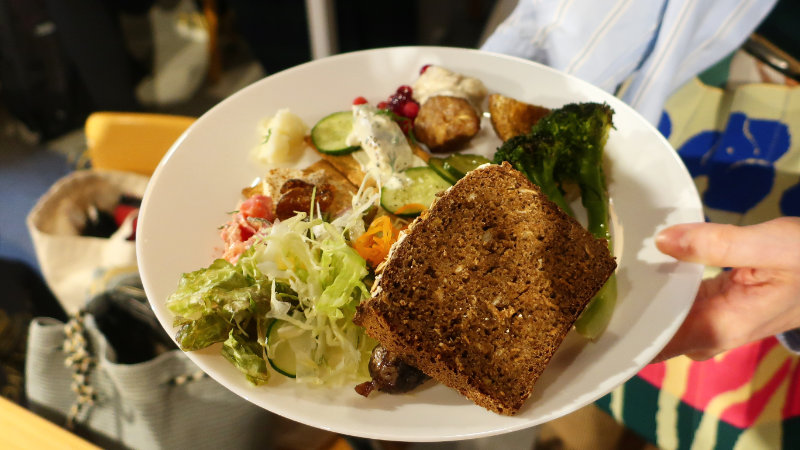 Rujaさんのエストニア料理は、北欧料理とも通じるところが多く、今回は特別に自家製のブラッドソーセージを用意してくださいました。北欧出身の方にも喜ばれ、とくにライ麦パンは「日本ではなかなか手に入らない本格的な味」と、1斤まるごと購入される場面も。